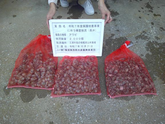 放流数量 アワビ稚貝 3,000個[前回 2,000個]