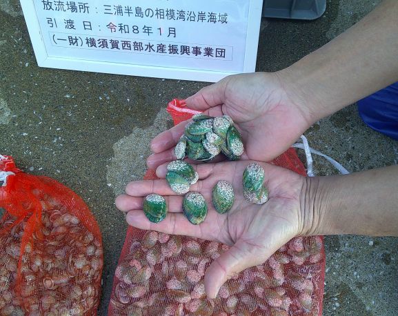 放流数量 アワビ稚貝 1,000個[前回1,500個](写真右側)