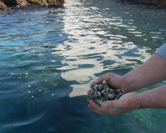 ※写真左側 県栽培漁業協会から無償提供 アワビ稚貝 1.5千~2千個 殻長 20mm(規格外)